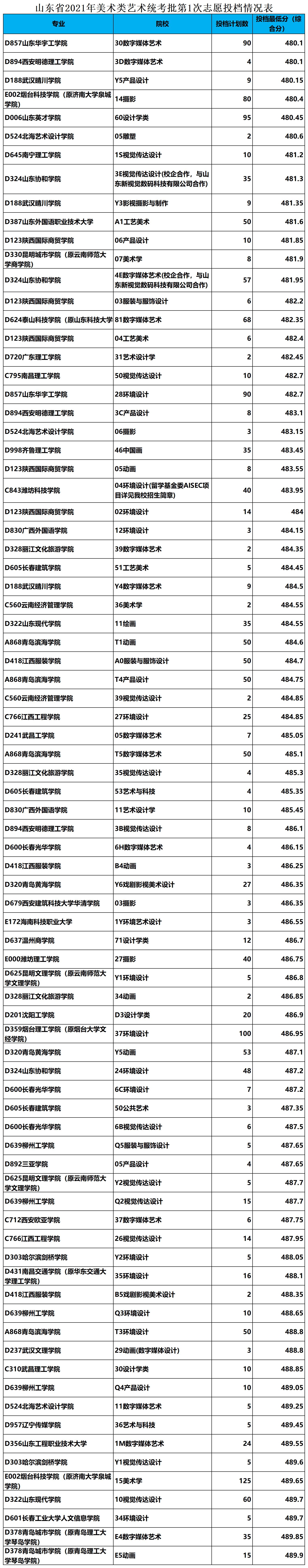 山东省美术综合分在510分至520分之间录取人数为2375人,具体录取院校、录取专业及录取分数见下表: