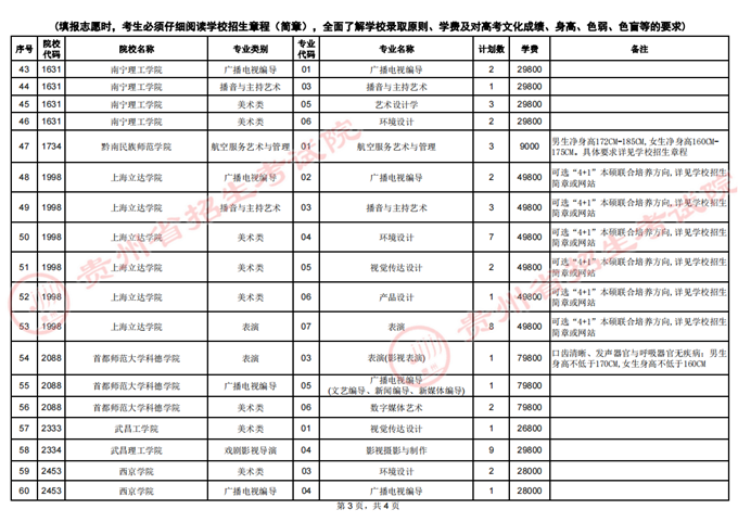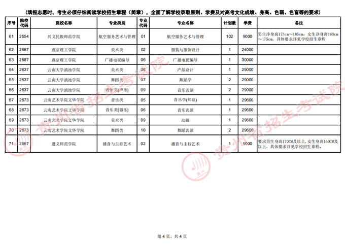 四、填报志愿时考生须仔细阅读学校招生章程(简章),全面了解学校录取原则、学费及对高考文化成绩、外语、民族、身高、色弱、色盲等的要求。希望广大考生积极填报,以便争取录取机会。