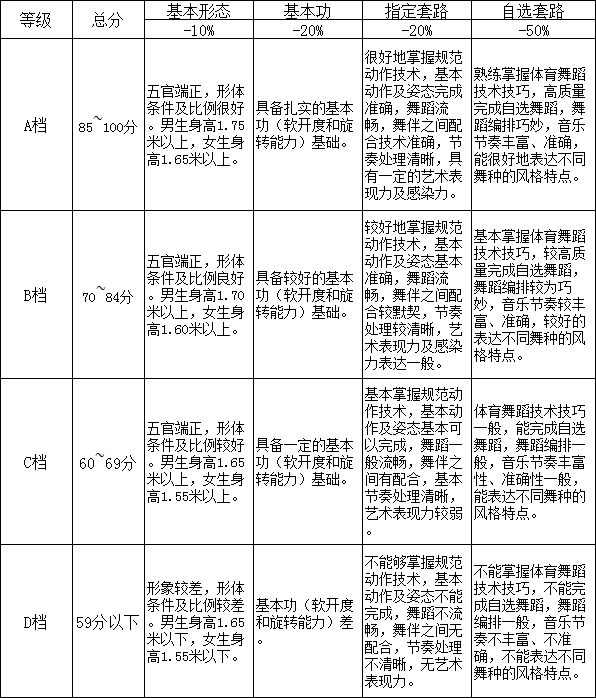 体育舞蹈专业考试大纲