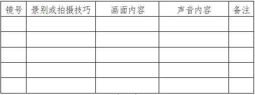 2.根据指定的某一种情境或主题,如“喜悦”(或“成长”,或“心有灵犀”等)设计并描述一组镜头,填入下列表格中: