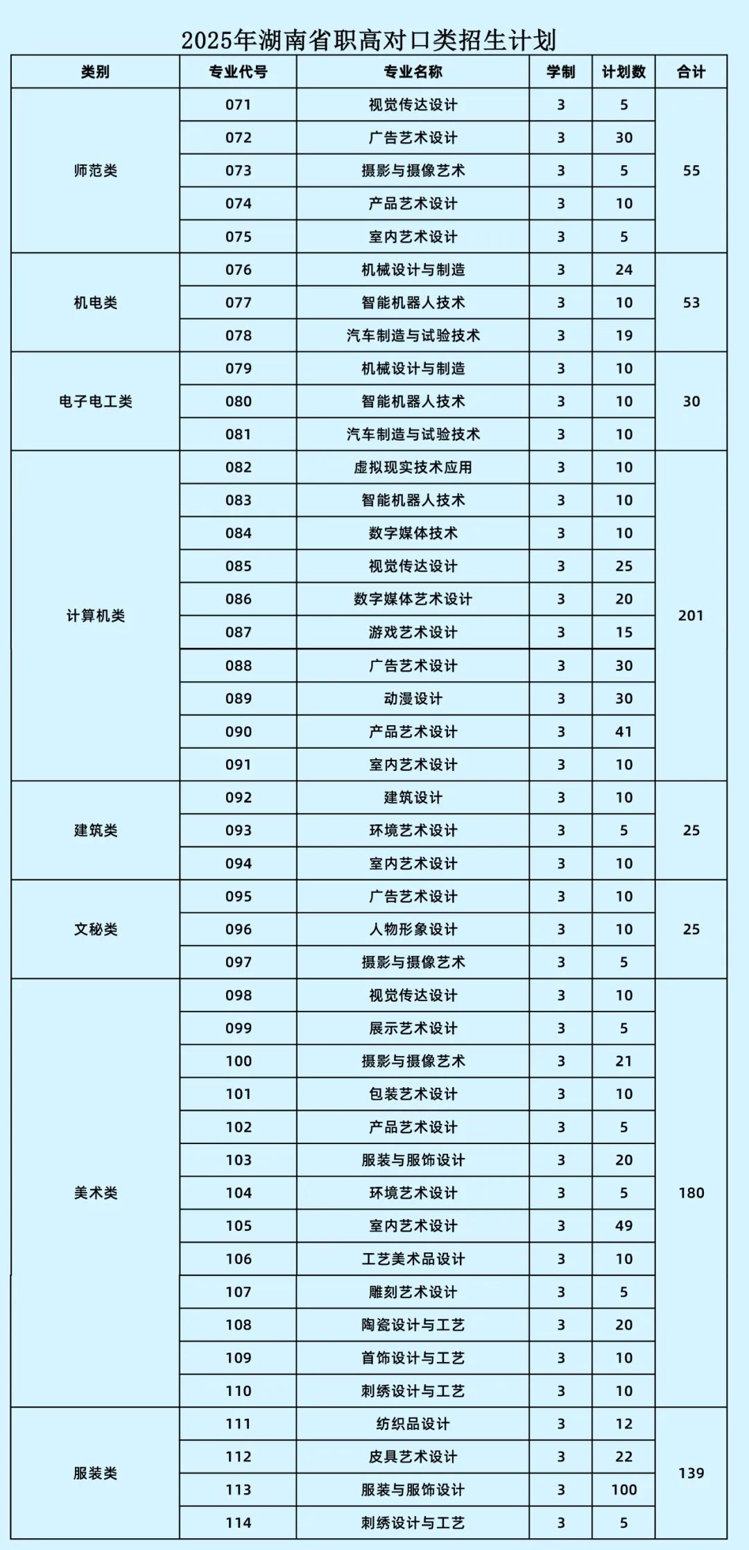 学校紧密对接湖南工艺美术、文化创意和智能制造产业,设置了刺绣设计与工艺、陶瓷设计与工艺、动漫设计、机械设计与制造等27个专业,构建了刺绣设计与工艺、服装与服饰设计、环境艺术设计、数字媒体艺术设计、视觉传达设计、机械设计与制造等6大专业群,打造了有效服务文化强国战略和湖南省4×4产业体系的“艺术+科技”特色专业体系,形成了“作品载体”教学、“大师+教授”同堂授课、“专业+项目+工作室”育人的教育教学特色。政行企校合作建设湖南湘绣产业科技教育园、湖南(益阳)工艺美术创意设计园、通道侗族非遗保护与研发工作站,合作建设湘绣艺术学院、湘瓷艺术学院、完美世界数字文创学院等产业学院。学校建成国家高水平专业群(A档)1个、国家级骨干专业5个、全国民族文化传承与创新示范专业点2个,省级一流特色专业群3个、国家级专业教学资源库3个、国家级生产性实训基地3个,在“金平果”中国高职院校竞争力排行榜中连续3年排名全国艺术类高职院校第一名。