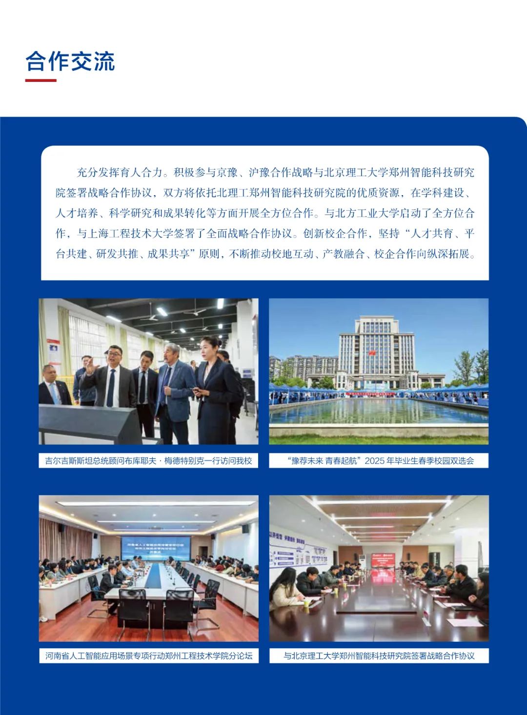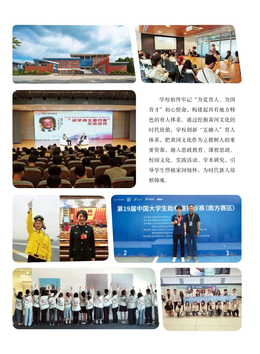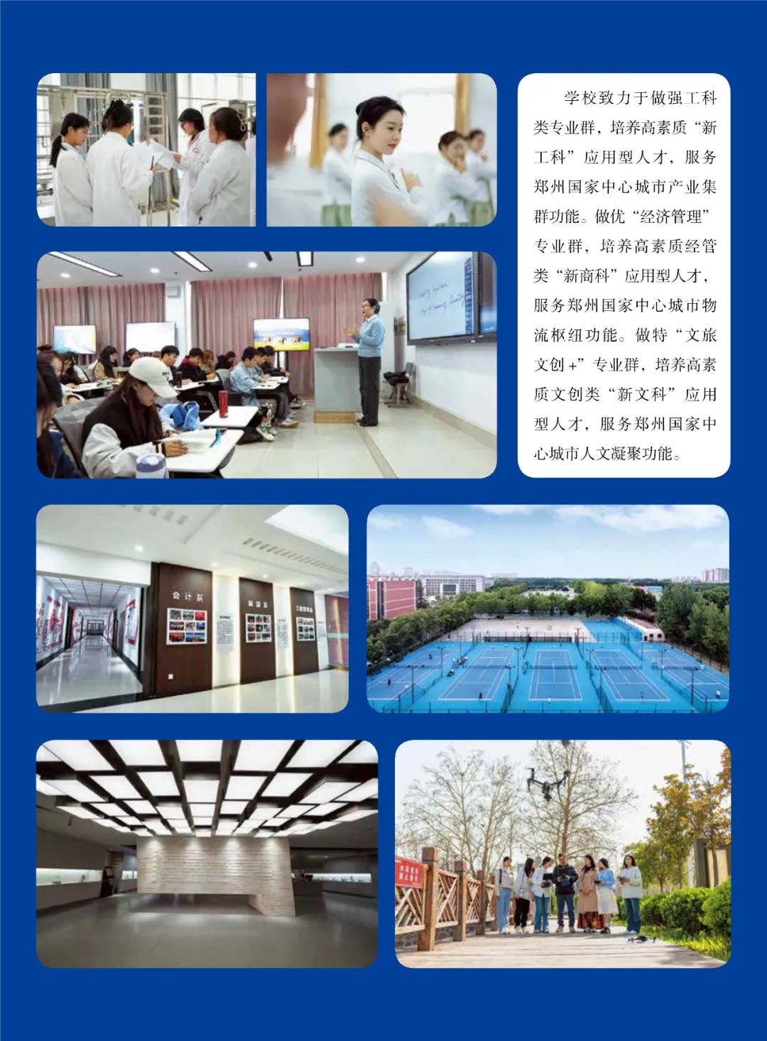 站在新的历史起点,学校聚焦立德树人根本任务,以服务河南省“十大战略”和郑州国家中心城市现代化建设为宗旨,以人才培养为根本,以学科专业建设为龙头,以队伍建设为关键,以深化改革为动力,以“一二三四”工程为抓手,着力推进教学创新、科技创新、管理创新、制度创新、文化创新,努力为培育德智体美劳全面发展的时代新人做出应有的贡献!