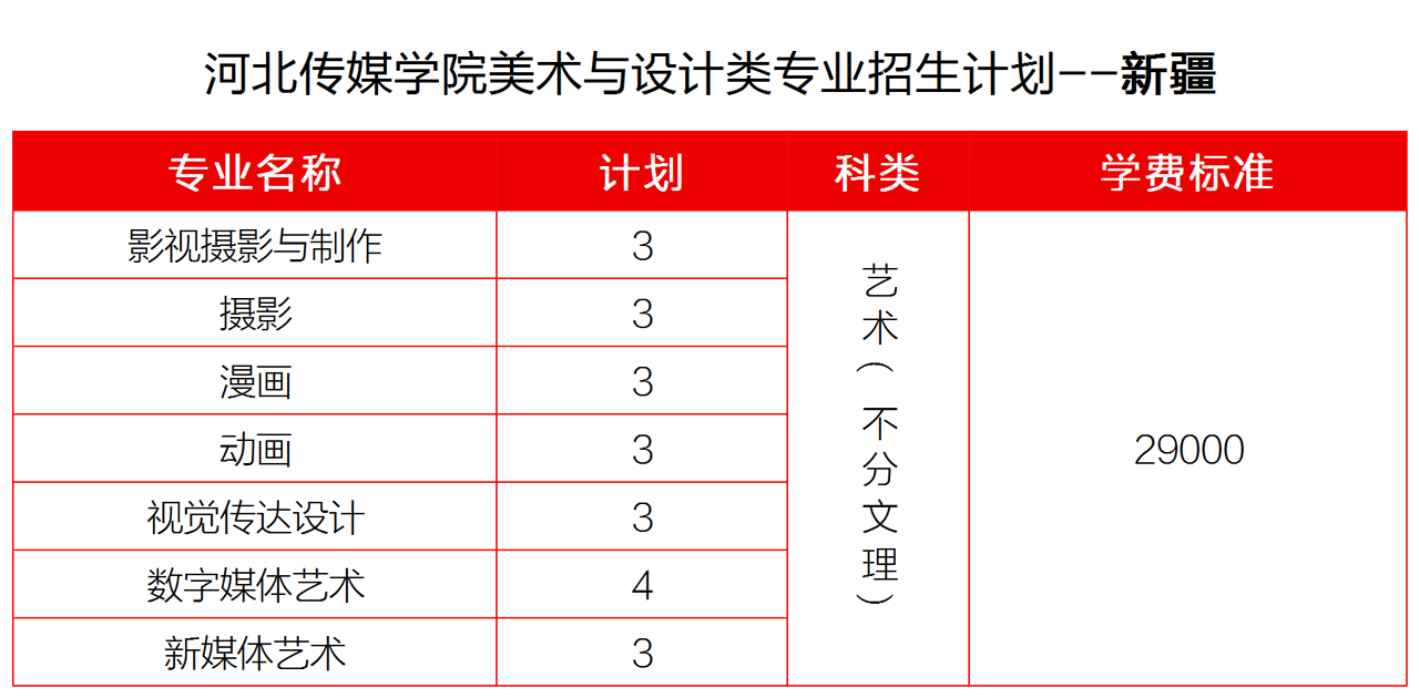 学校位于河北省石家庄市,普通全日制在校生26000余人。设有52个本科专业、3个专业硕士研究生专业。广播电视编导、录音艺术、播音与主持艺术3个专业为国家级一流本科专业建设点。网络与新媒体、戏剧影视美术设计、休闲体育、影视摄影与制作、广播电视学、舞蹈编导、摄影、视觉传达设计、表演9个专业为河北省省级一流本科专业。