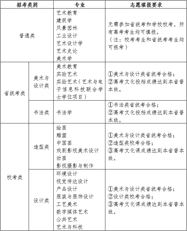 注:①美术学、艺术史论、艺术设计学三个专业2024年首次编制分省分专业计划,纳入普通本科批次录取。