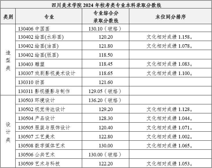 如遇专业综合分相同的,则依次比较校考专业综合分占比最高科目单科成绩、高考文化相对成绩(高考文化成绩÷所在省份普通本科相应科类控制分数线,以四舍五入法保留到小数点后三位)、语文数学外语总分、语文单科成绩、外语单科成绩、数学单科成绩由高到低排序,语文、外语、数学单科成绩均按满分150分进行折算。