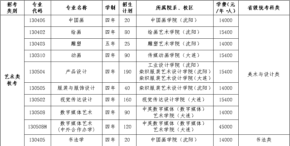(1)艺术类校考专业不编制分省招生计划,全国考生排名录取,考生相应科类的省级统考成绩须符合生源所在地公布的合格要求,且取得所报专业对应校考类别的合格证。