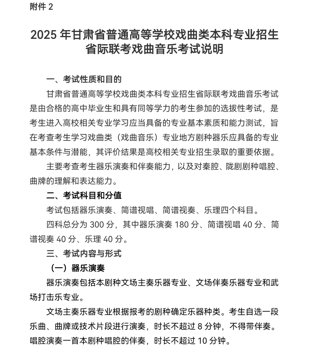2:2025年甘肃省普通高等学校戏曲类本科专业招生省际联考戏曲音乐考试说明