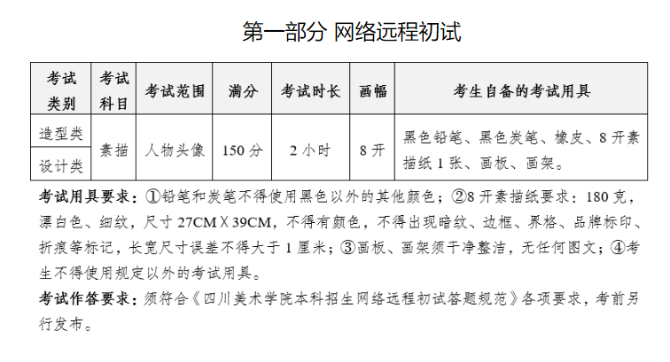 ⑤符合《四川美术学院本科招生考试答题规范》各项要求。