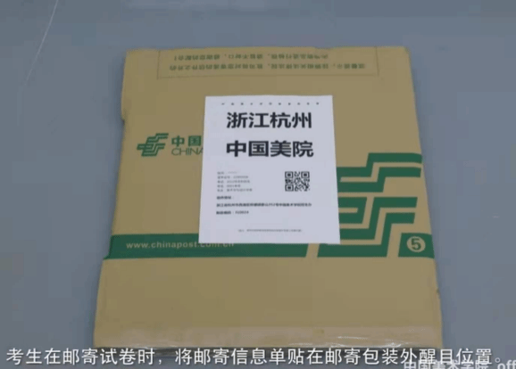 3、邮寄试卷。请考生持中国美术学院邮寄信息单和密封好的“本场考试试卷和准考证”一起到邮政营业网点进行交寄。一律以邮政 EMS 特快专递产品邮寄(寄递要求参照当地邮政规范寄递要求)。要求单人单件,不得多名考生试卷合并邮寄。邮寄地址:请考生将中国美术学院邮寄信息单根据邮政网点交寄要求粘贴在邮寄外包装上显著位置,打包胶带不得遮盖条形码。邮寄电话:0571-87200200。