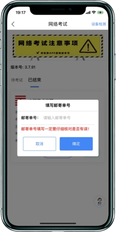 邮寄后,进入“艺术升”APP→点击“网络考试”。将邮寄单号填写本场考试的“邮寄单号”。