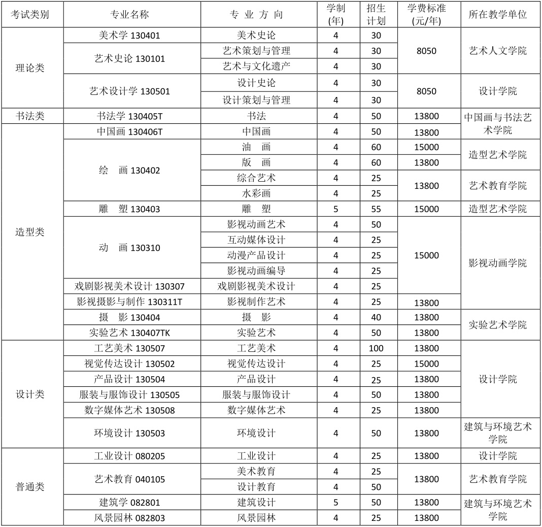 注:①招生专业、计划及收费标准以上级主管部门下达为准;②住宿费每人1200元/年(四人间);③各专业(方向)介绍,请关注四川美术学院官方网站。