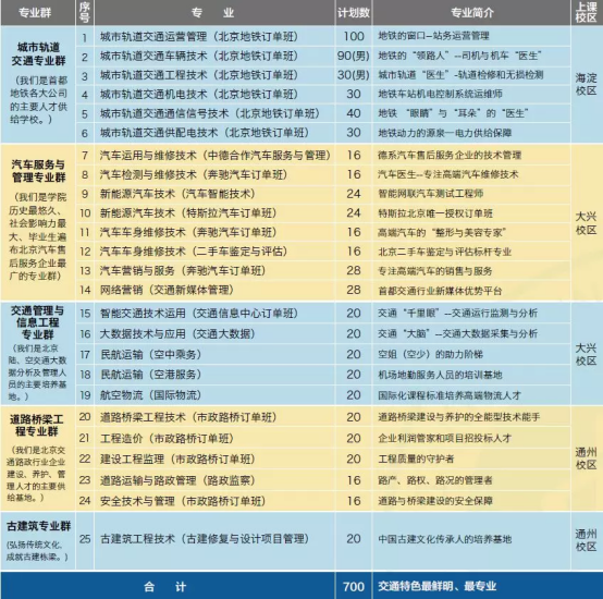 城市轨道交通专业群、汽车服务与管理专业群、交通管理与信息工程专业群、道路桥梁工程专业群、古建筑专业群