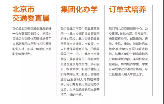 北京交通运输职业学院是北京市交通委直属的唯一公办全日制普通高等职业院校。学院为首都综合交通体系建设培养了大批高素质应用型技术和管理职业人才,形成了鲜明的交通职业教育特色。