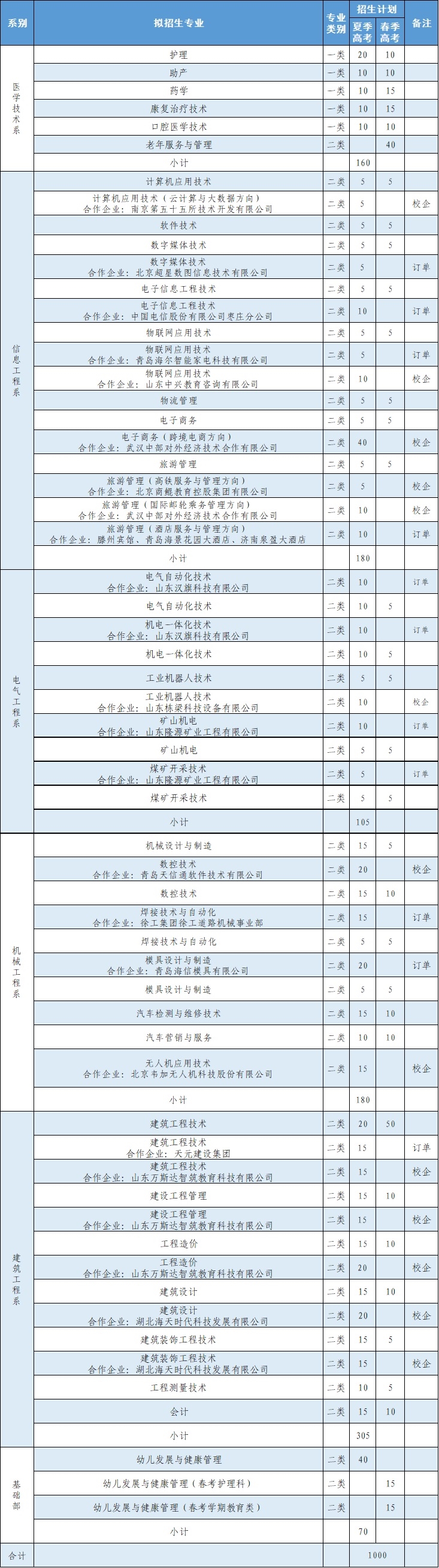 2019年单独招生拟招计划表