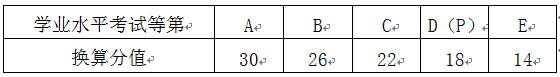 学考总分=各科等第换算分值相加的总和(信息技术与通用技术学考分设的考生,信息技术与通用技术等第换算分值以50%计)。各科等第转换成分数如下表所示: