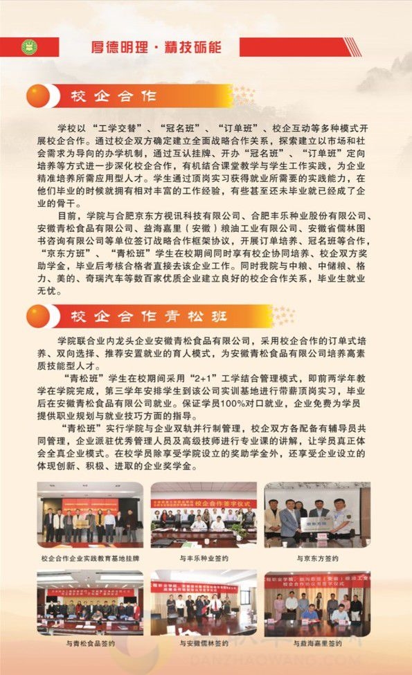 学院位于合肥市高教基地,现有在校生5000余人,教职工222人,高级职称39人,“双师型”教师60人。自办学以来,学院为社会经济发展培养输送了3万余名各层次专业人才。