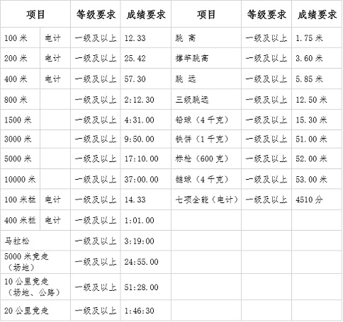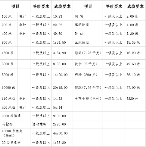 附件二:报考田径项目运动等级及成绩要求