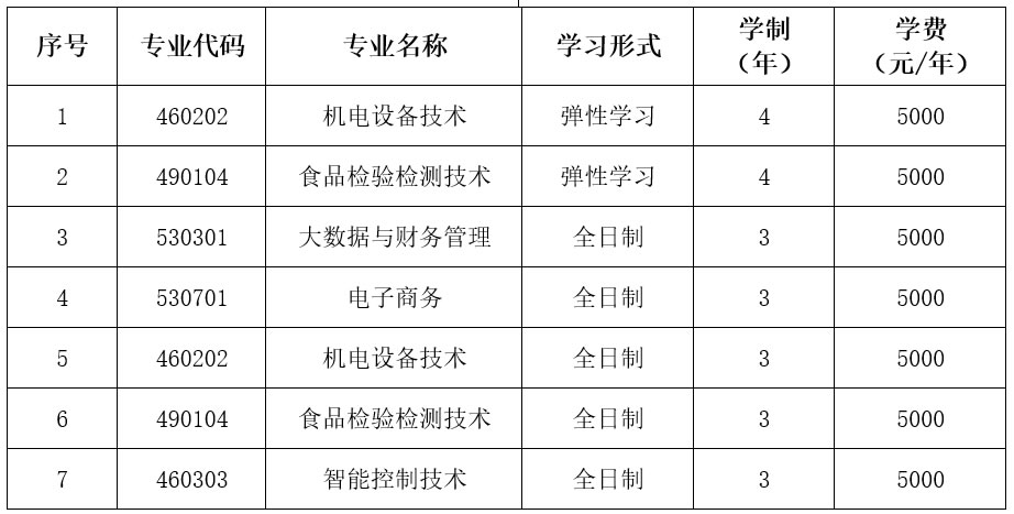 二、云南轻纺职业学院2021年高职扩招专业一览表
