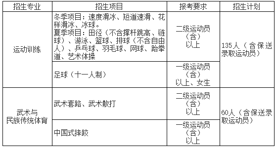 运动训练、武术与民族传统体育专业招生实行文化考试和体育专项考试相结合的办法。