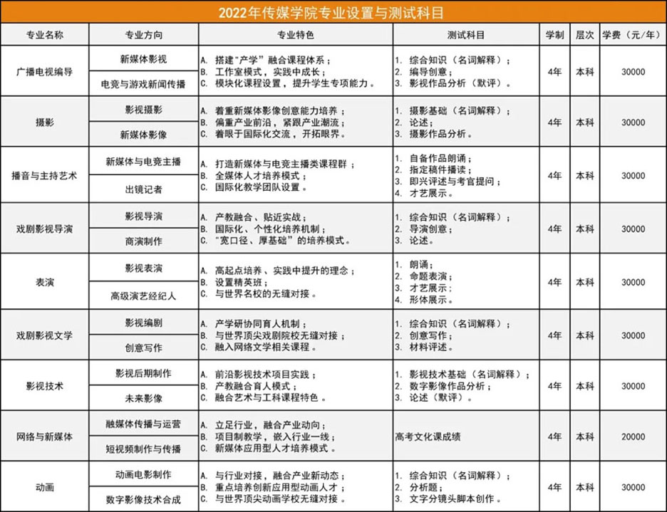 本专业核心课程:剧本创作、短片创作、影视视听语言、类型电影、文艺美学、戏剧理论精读,媒介文化研究、新媒体创意等。