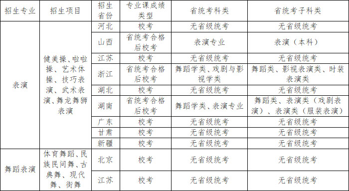 招考项目:健美操、啦啦操、艺术体操、技巧表演、武术表演、舞龙舞狮表演;