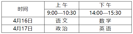 1、文化考试:考生须参加生源所在地省级招生考试机构组织的运动训练文化考试,考试科目为语文、数学、政治、英语。各科分值150分,总分600分,使用国家通用语言文字作答。各科目考试时间为: