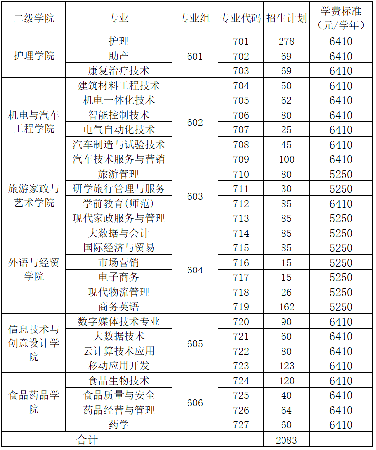 省高职教育重点专业:护理、药品生产技术、电气自动化技术、食品生物技术、机电一体化技术、旅游管理