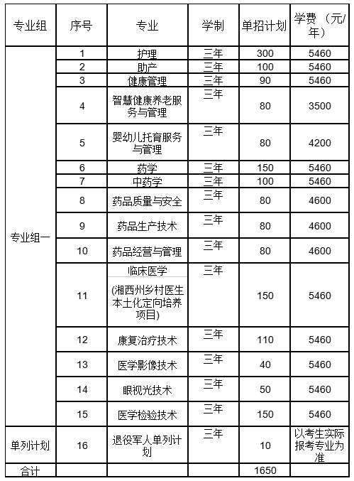 退役军人考生招生计划10人,专业由考生在上述专业中任选(临床医学专业定向培养项目除外)。