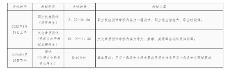 第二十一条 所有考生都必须参加我校组织的心理测试、职业技能测试。应届普通高中有学业水平考试成绩的考生、社会人员及退役军人不参加文化素质测试,其他人员必须参加我校组织的文化素质测试。