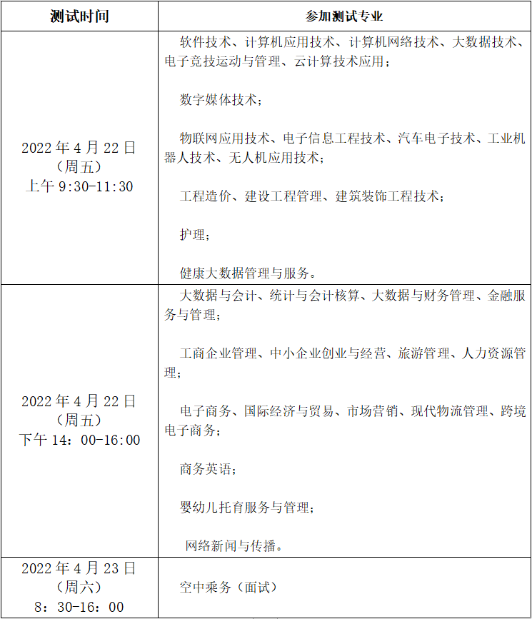 5.2022年4月22日~4月23日,学生到校参加综合素质测试。具体情况如下表: