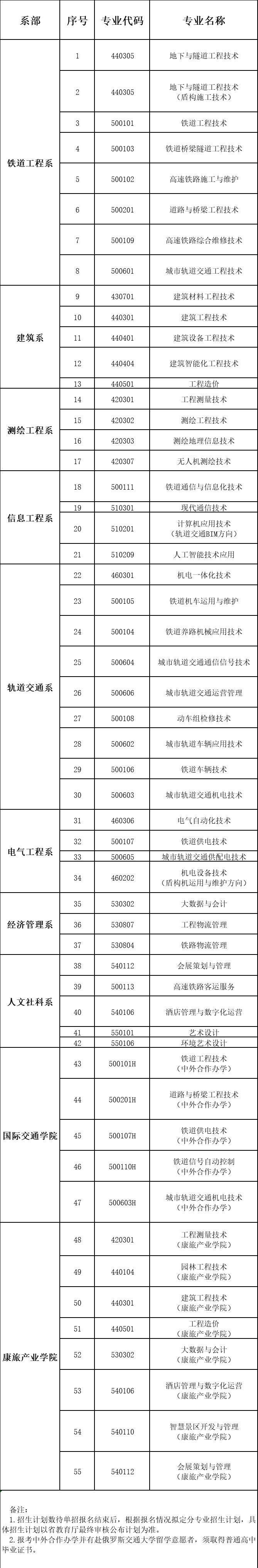 石家庄铁路职业技术学院2022年单独考试招生专业