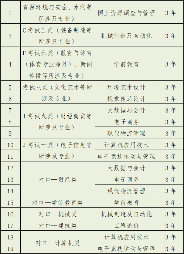 2.招生专业、考试类和学制: