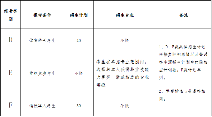 (二)其他类生源招生计划(该计划适用于D、E、F类考生)