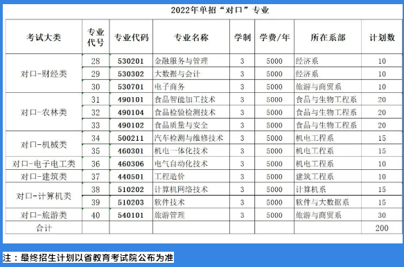 报考对口计划的考生均需参加文化素质考试。如考生具有2022年全省对口专业考试成绩,可选择使用对口专业考试成绩折算代替职业技能考试成绩,也可选择参加牵头院校组织的职业技能考试,具体折算办法由各牵头院校确定;考生如没有2022年全省对口专业考试成绩,则必须参加牵头院校组织的职业技能考试,否则,职业技能科目成绩为零。