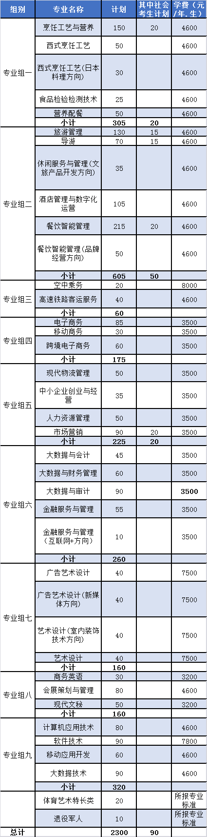 备注:非中职专业对口考生可跨组报考,其中,专业一志愿报考空中乘务、高速铁路客运服务两个专业的考生需专业性测试合格。