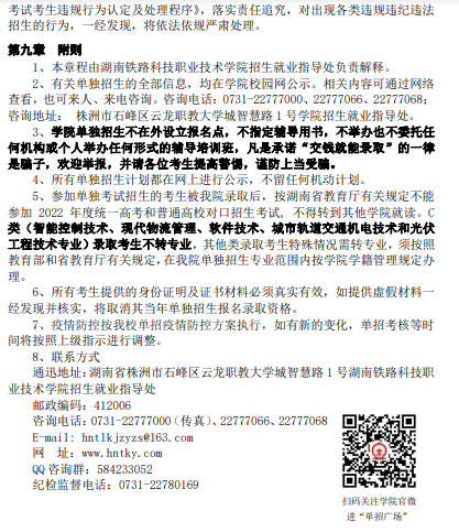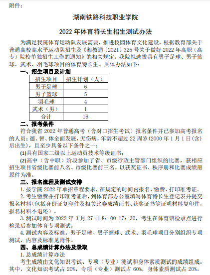 根据《湘教通〔2021〕325 号关于做好 2022 年高职(高专)院校单独招生工作的通知》要求,结合湖南铁路科技职业技术学院招生工作实际情况,制定本章程。