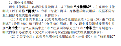 C 类专业组:湖南省 2022 年“高考生”,志愿就读智能控制技术、现代物流管理、软件技术、城市轨道交通机电技术和光伏工程技术专业。根据专业改革试点要求,C 类专业组将实行按考生第一专业志愿所填报的专业分别进行对应的技能测试,技能测试要求参见《文化知识考试与职业技能测试大纲及相关要求》。