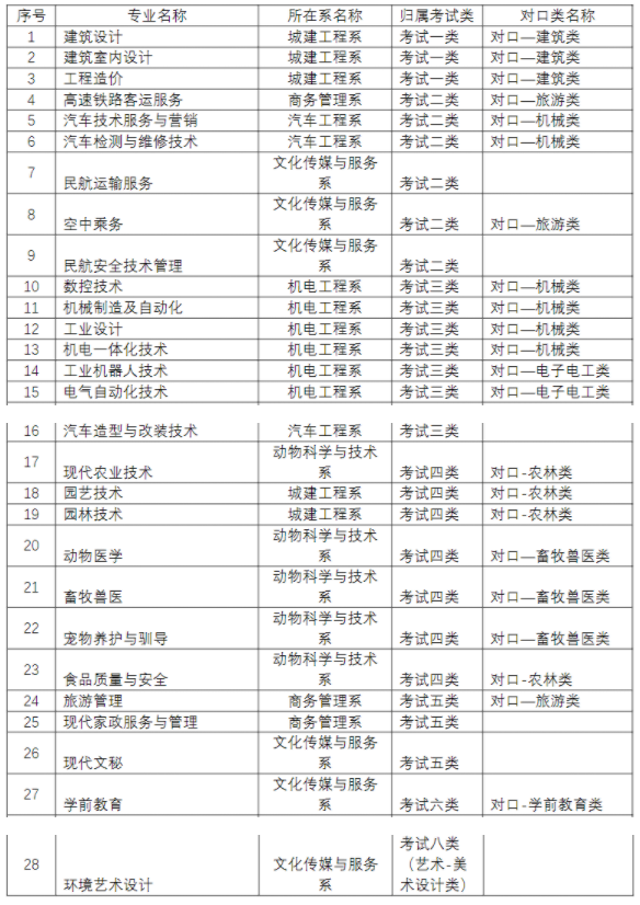 廊坊职业技术学院2022年单独考试招生专业汇总表