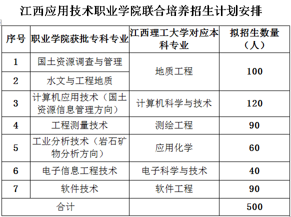 2021年江西理工大学与我校开展本科层次技术技能型人才联合培养工作,联合培养专升本学生在江西理工大学和我校的共同培养下完成2年本科阶段的学习,培养地点在我校。
