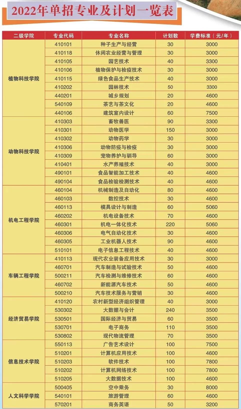 1.D类考生招生计划200人,其中退役军人计划50人,专业可在上述专业中任选。其他社会人员中园艺技术专业计划80人,休闲农业经营与管理专业计划40人,种子生产与经营专业计划30人。