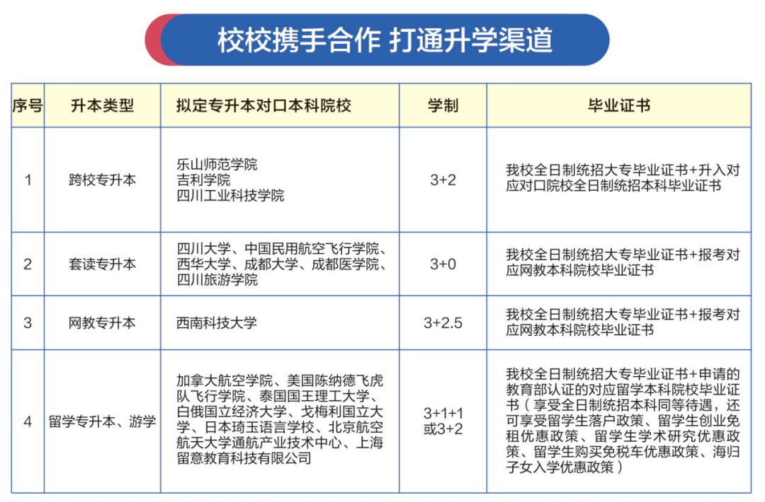 学校以“办百年名校,育通航英才”为愿景,立足高等职业教育,扎根天府新区,服务成渝经济圈,辐射西南,致力于把学校建设成为有质量、有特色、有品牌、有良好社会影响的高职院校。