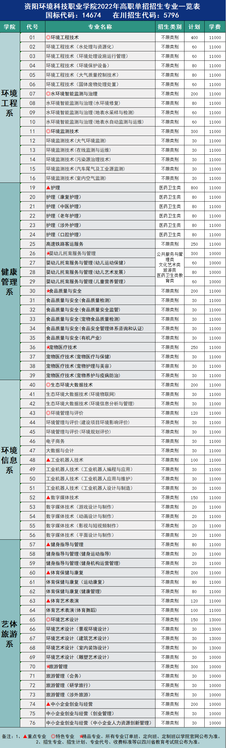 资阳环境科技职业学院是经四川省人民政府批准,国家教育部备案,按照本科标准建设的全日制普通高等院校,面向全国招生,学院建设总投资30亿元,校园规划占地面积1200亩,首期建设用地626.9亩,是四川战略性新兴人才培养基地,中国生态环境产教联盟理事单位,西南地区唯一一所覆盖生态环保全产业链人才培养的高等院校。