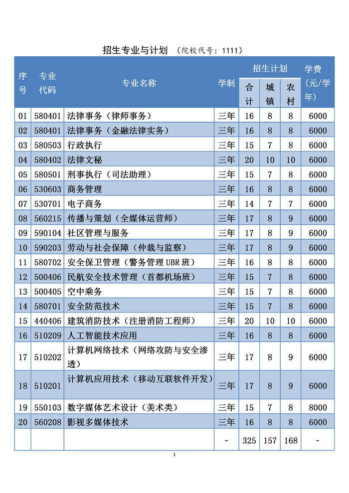 建校以来,学院为政法行业和社会输送了30000多名合格毕业生,为政法系统培训干部10000余名。学院突出“立德明法、重能强技”人才培养特色,近年来,学生在校外职业技能、文体等竞赛中累计获得373个奖项,其中获得国际及国家职业技能大赛奖6项、省部级及全国行业职业技能大赛奖200余项,毕业生深受用人单位欢迎。\
