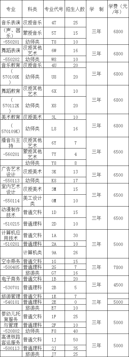 注:专业设置及招生计划以内蒙古自治区招生考试中心官网公布为准;各专业学费标准以2022年发改委批文为准。