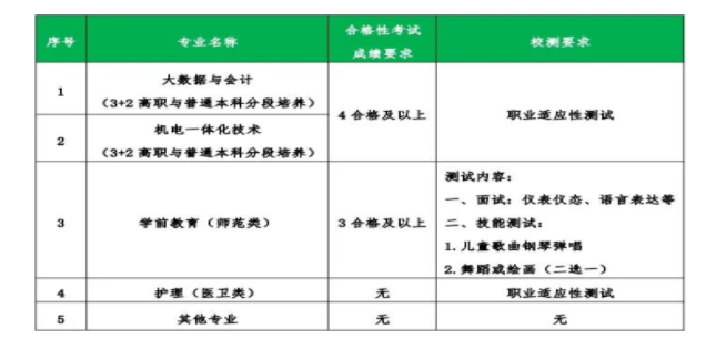 ⑴3+2高职与普通本科分段培养专业:职业适应性测试200分;