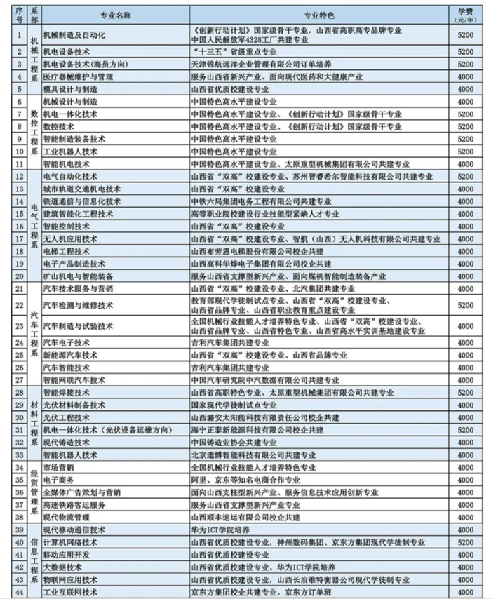 教学资源一流:学院现有教学仪器设备总值10943万元,校内建有工业机器人应用人才培养中心、工程技术综合训练中心、吉利新能源汽车教学中心等8大实训中心,智能制造综合应用系统实训室、3D打印实训室、物联网应用技术实训室等40余个实训室。其中“工业机器人应用人才培养中心”是教育部首批、山西省唯一的工业机器人技术培养基地;中央财政支持建设的实训基地2个。合作企业混合建设6个二级产业学院,真实岗位育人、双重身份学习。