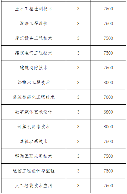 我校2022年高职单独招生专业收费标准