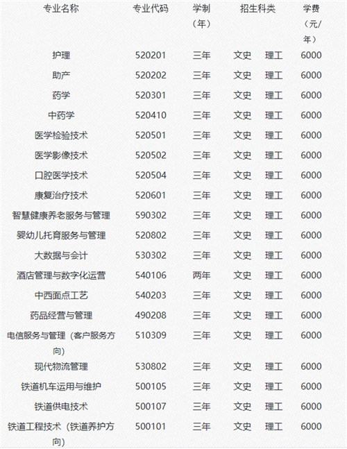 2、助产专业只招女生,铁道供电技术专业只招男生。