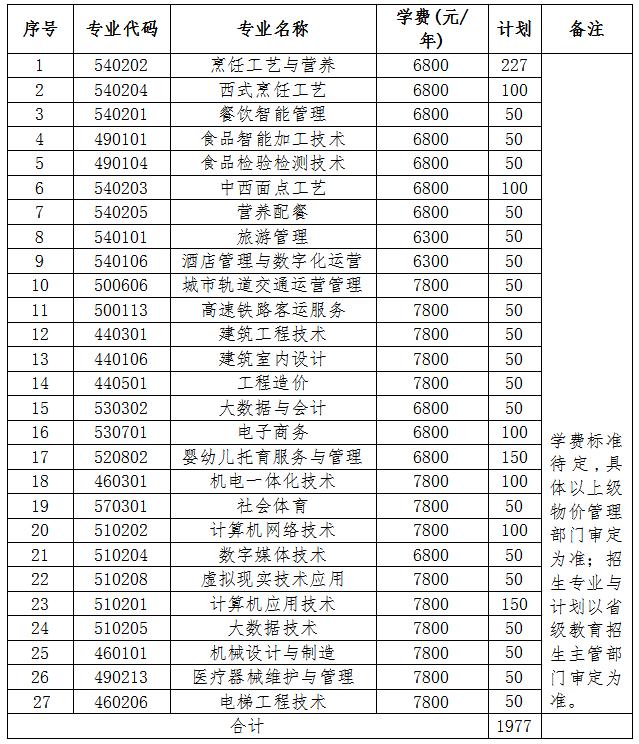 2、烹饪工艺与营养、西式烹饪工艺、餐饮智能管理、食品智能加工技术、食品检验检测技术、中西面点工艺、营养配餐、大数据与会计、电子商务、婴幼儿托育服务与管理、数字媒体技术专业6800元/年/生;