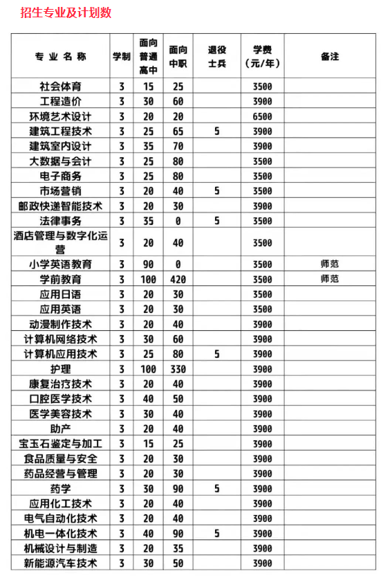 学校2021年在校学生1.7万余人,设有智能制造学院、经济管理学院、医学院、制药与材料学院、人文与外国语学院、建筑与艺术学院、信息工程学院、公共教育学院、马克思主义学院和继续教育学院等教学单位,43个常设专业,涉及14个专业大类,32个专业科类,其中省级特色专业有电气自动化技术、机电一体化技术、医学美容技术、应用英语、会计、建筑工程技术、口腔医学技术、法律事务、护理、工程造价、机械设计与制造、市场营销、电子商务和计算机网络技术等16个。